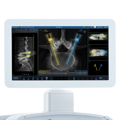 Mazor X supports both open and minimally invasive spine procedures, adapting to diverse surgical workflows. Its advanced software interface enables efficient registration, planning, and execution, helping optimize operating room efficiency while maintaining high accuracy standards in complex cases.